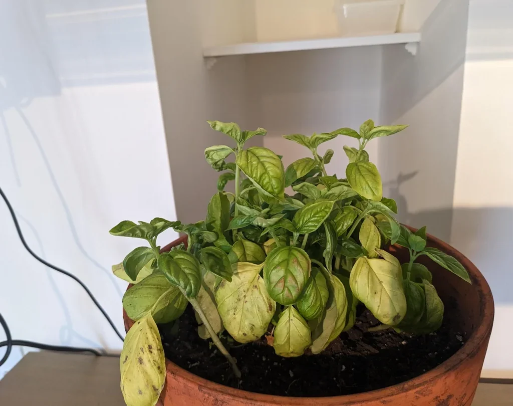 Basil is prone to pests and fungal diseases, which can stress the plant and cause yellowing. Common issues include:
